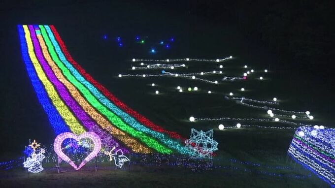 輝いているのはおよそ60万球のLEDライト。二本松市のあだたら高原スキー場のイルミネーションは、震災からの復興を願って13年前から行われているもので、いまでは夏の風物詩となっています。