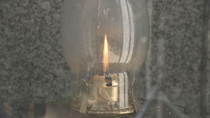 6日朝早く、楢葉町の宝鏡寺には、全国からおよそ100人が集まりました。原発事故や原爆の被害を伝える博物館「伝言館」を併設するこの寺の境内に、1つの火が灯り続けています。原爆投下直後の広島と長崎の焼け跡から採られた「非核の火」です。