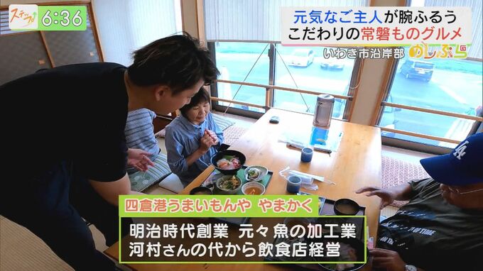 --河村さん(やまかく4代目大将)「佐藤さん、おすすめありますよ!常磐もの膳ですね。」