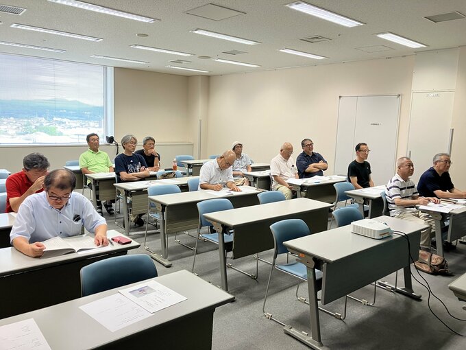 根本さんは「万葉の歌」に詠まれている「安積山」と「花かつみ」をテーマに講義を行い、「郡山について詳しく説明できるようにとテーマを選びました。ぜひ、子どもや孫に伝えてください」と“生徒たち”に呼びかけました。
