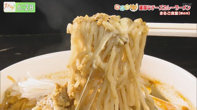 そんなスープに合わせるのは、ツルツル食感の自家製中太麺。魚介のうま味がたっぷり入ったカレースープは結構辛め。そこにたっぷりのチーズをのせ、バーナーで炙れば完成。とろけるチーズのまろやかさで辛さもマイルドに。煮干しとカレー、そして空腹は最高のスパイスですね。