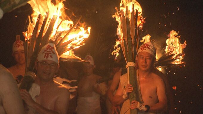 「センドーセンドー!」松明かつぎ山道登る男たち 伝統の「麓山の火祭り」二度の中断乗り越えて 福島・富岡町 2024年8月16日(金) 14:48 国内 15日、福島県富岡町で、400年以上の伝統を誇る「麓山(はやま)の火祭り」が行われました。震災と原発事故、そしてコロナ禍で度重なる中断を経て復活した祭りで、地域の復興を願う火が灯りました。「センドー セ…