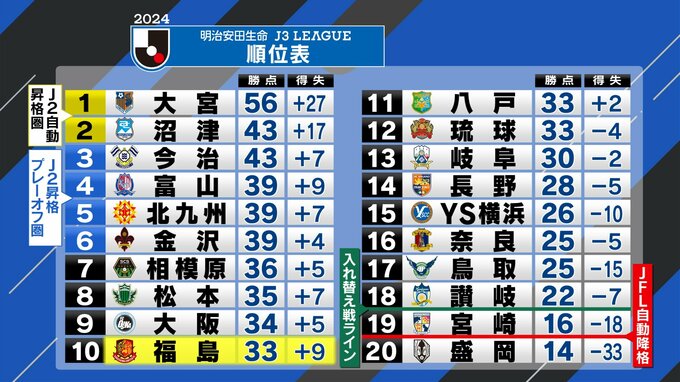 サッカー明治安田J3の8位の福島ユナイテッドFCは、17日、ホームに13位のFC琉球を迎え撃ちました。