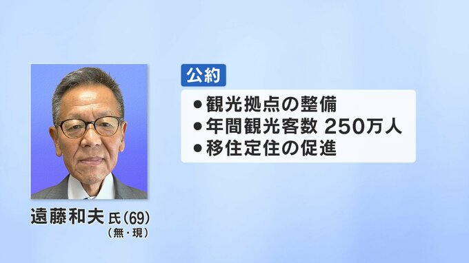 遠藤さんは、観光拠点の更なる整備を行い、年間の観光客数250万人を目指すほか、移住定住の促進などを公約に掲げていました。