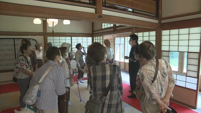 また、天鏡閣の近くにある迎賓館では、普段は見られない中の様子が特別に公開されていて、県内外から訪れる人の姿が見られました。