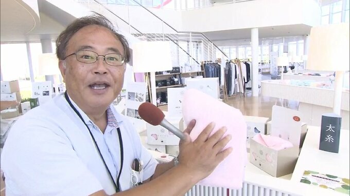 水津邦治アナウンサー「こちらが今回開発された糸で作られたタオルです。とにかく肌触りが柔らかいです」
