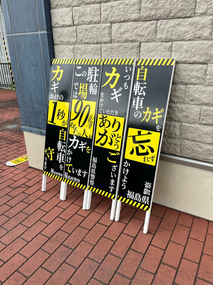福島県内では、自転車の盗難が増え続けていて、県警によりますと、今年県内で起きた被害は7月末までに679件と、去年の同じ時期より163件増えています。被害にあった自転車の3分の2は、鍵をかけずに駐輪されていました。被害を防ぐために、施錠を促すための新たな看板が、郡山市で設置されました。
