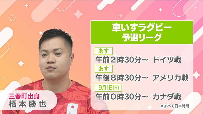 金メダルの期待がかかる三春町出身で車いすラグビー代表の橋本勝也選手は、30日未明、予選リーグの初戦でドイツ代表と対戦します
