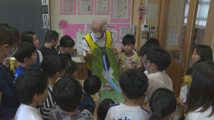 会津若松市の鶴城小学校で開かれた出前講座は、水害や土砂災害への知識を深めてもらおうと県が企画したもので、県の担当者が集中豪雨の危険性を説明しました。また、集中豪雨によって起きる土石流などの災害を模型を使って説明し、子どもたちは自ら避難する大切さを学んでいました。