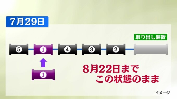 パイプは7月27日に、協力企業の作業員が搬入しました。このとき、2番から5番までを搬入したところで、放射線量が高かったため、早く現場を離れる必要があり、「1番」のパイプを仮置きの状態にしていました。