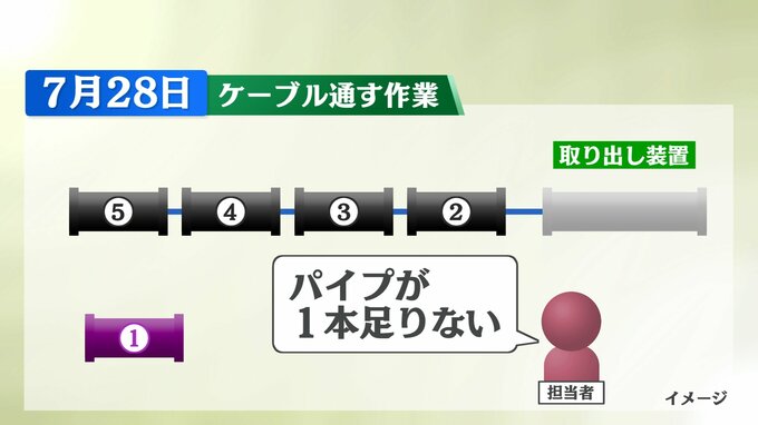 そして、この翌日、パイプにケーブルを通す作業が行われましたが、別の担当者が、パイプが1本足りないことに気づきます。