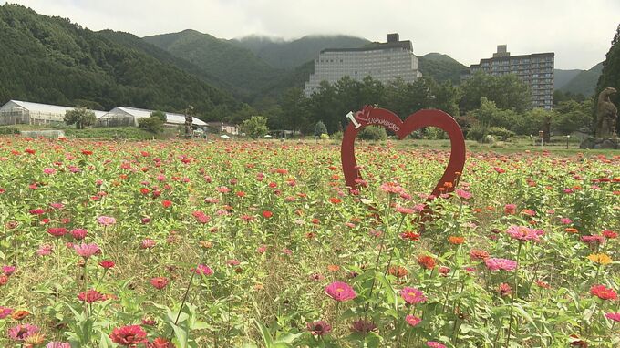福島県猪苗代町では、14万本のジニアが見頃を迎え、訪れた人たちの目を楽しませています。