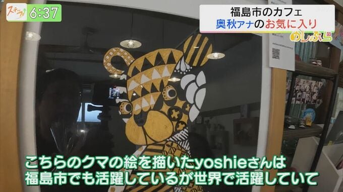 --佐藤さん「こちらのクマの絵を描いたyoshieさんは福島市でも活躍しているが、世界でも活躍していて。今はイギリス在住で時々、福島に帰ってきてうちのお店でワークショップを開いたりとかしていただいています。」