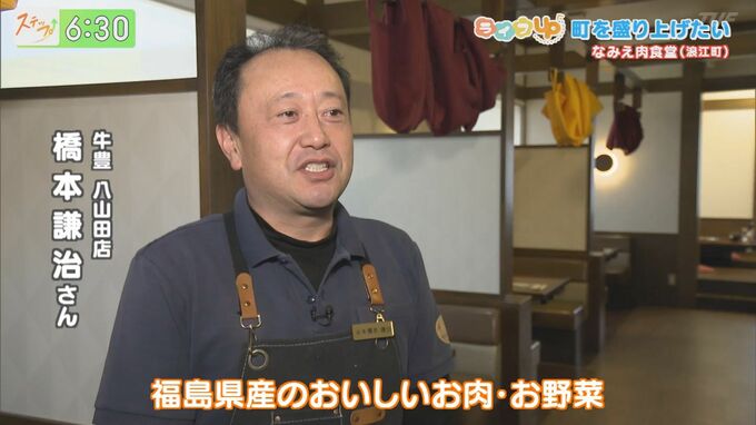 --橋本 謙治さん(牛豊 八山田店)「JA全農福島直営店でございますので、福島県産の美味しいお肉、あとは野菜をふんだんに使って、福島県の恵みを皆さんにお届けするようなお店をコンセプトにやらせていただいてます。」
