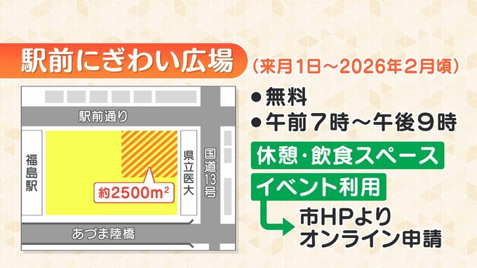 福島駅東口の再開発ビルは、相次ぐ計画の見直しで当初の予定から2年遅れの2028年度に完成する予定で、広場は、工事が始まるまでの期間限定となります。この取り組みが駅前のにぎわいにつながるのか、街の人は…。