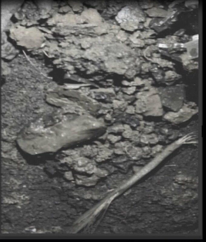 取り出し装置の先端につけられたカメラで撮影されたもので、小石状の燃料デブリが確認できます。