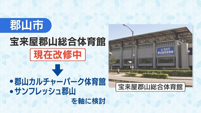 郡山市では、選挙の際は「宝来屋郡山総合体育館」を使っていましたが、現在改修中で使えません。そのため、「郡山カルチャーパーク体育館」や「サンフレッシュ郡山」を開票所として検討しているということです。