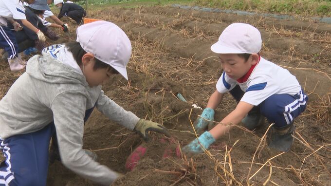 収穫したサツマイモは、子どもたちが持ち帰って食べるほか、地元の企業に販売されるということです。
