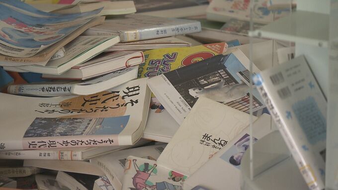 震災が起きた日は卒業式だったため、3年生の教室の黒板にはお祝いの言葉や別れを惜しむメッセージが残されていました。また、図書室では、地震で床に散らばった本の色褪せた表紙が13年の月日を感じさせます。卒業生らは、学び舎の最後を目に焼き付け、思いを巡らせていました。