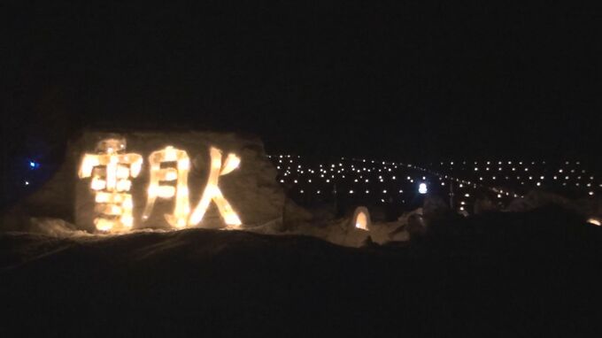 冬の時期に、雪を照らす下郷町の「なかやま雪月火」。