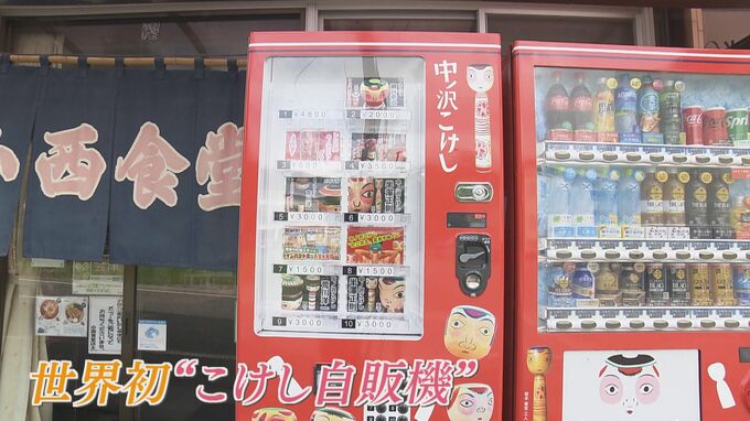 さらに西村さんのこけし愛は加速。今年7月には、なんと世界初のこけしの自販機を店の前に設置しました。現金を入れボタンを押してみると・・・。