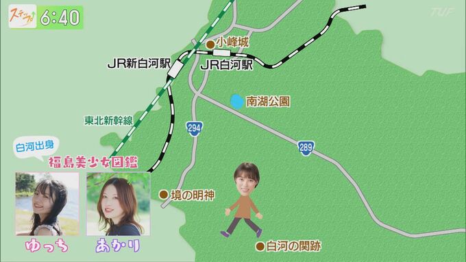 白河市に詳しい福島美少女図鑑の2人(白河市出身 牧田優花さん・室井愛香利さん)にもおすすめスポットをきいていざ、出発!まずは、白河といえばあれですね。