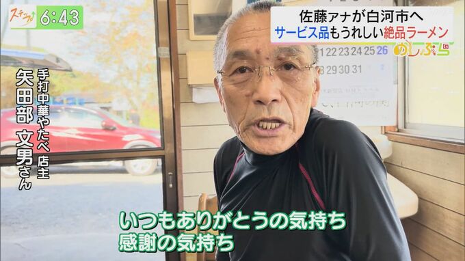 --矢田部文男さん(手打中華やたべ 店主)「サービス。皆食べてる。」