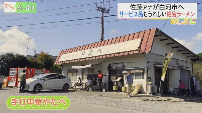 まずやってきたのは、白河の関の目と鼻の先にあるラーメン店『手打中華やたべ』。人気店だけあってオープン前から常連さんの待つ姿が!