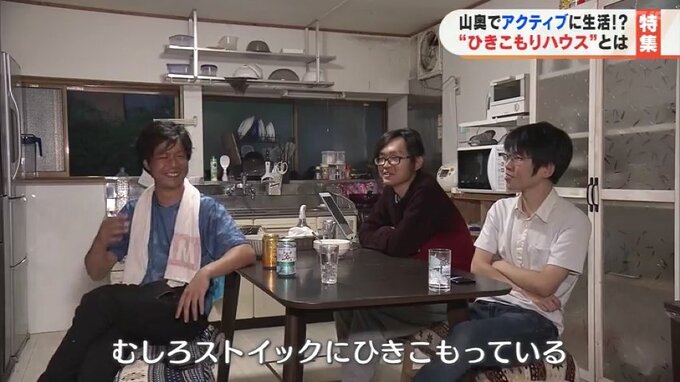 ひきこもりハウスに住むのは、テイクさんのほかに2人。笑顔が絶えないモモさんと、ゲームは一日8時間というあいべるさん。2人とも、北陸地方からひきこもりハウスにやってきました。