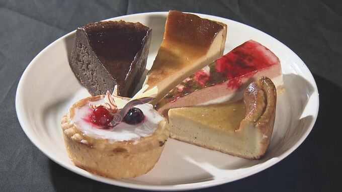「個性豊か」と評判の仲野屋のケーキ。こだわりのケーキは他にも。見た目も形も違うこちらの5つケーキ。全てチーズケーキなんです。