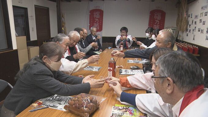 「福乃茜(ふくのあかね)」は、福島市飯野町特産のウメ「露茜(つゆあかね)」で作った梅酒で、一般的な梅酒と異なり、赤いのが特徴です。7日、本宮市の蔵元で今年度の新酒のお披露目式が行われ、露茜の生産者や、ラベルを制作した福島学院大学の学生などが試飲して、新酒の出来栄えを確かめていました。