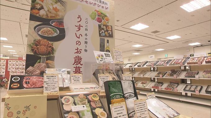 郡山市のうすい百貨店に設けられた特設コーナーでは、定番のビールなどをはじめ、857点のお歳暮商品を取り揃えています。初日の13日は、開店直後から、訪れた人たちが、お世話になった人に贈る一品を探し求めていました。