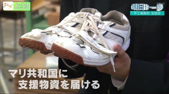 不要となった運動靴を卒業生から募り、真心と一緒にアフリカのマリ共和国に送っています。