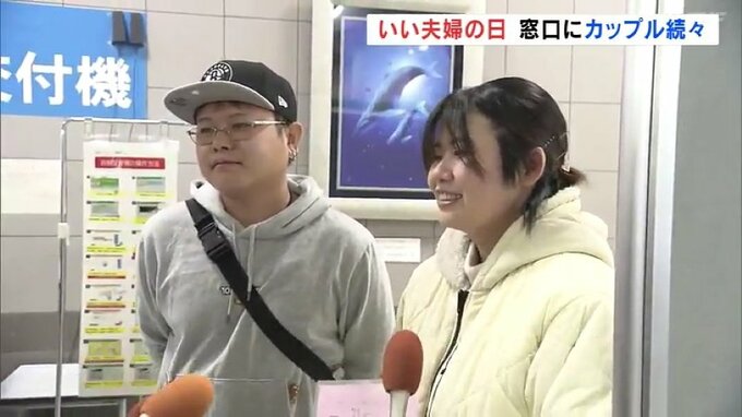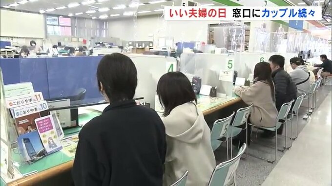 郡山市市民課の窓口には、「いい夫婦の日」に婚姻届を提出しようと、朝早くから次々とカップルが訪れました。