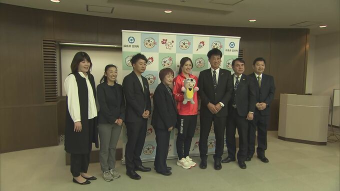 富岡町の山本町長や、町の関係者に出迎えられたのは、バドミントン女子の大堀彩選手。大堀選手は、バドミントンの強豪だった富岡高校の出身で、今年8月に開催されたパリオリンピックに女子シングルス代表として初出場し、ベスト8入りを果たしました。