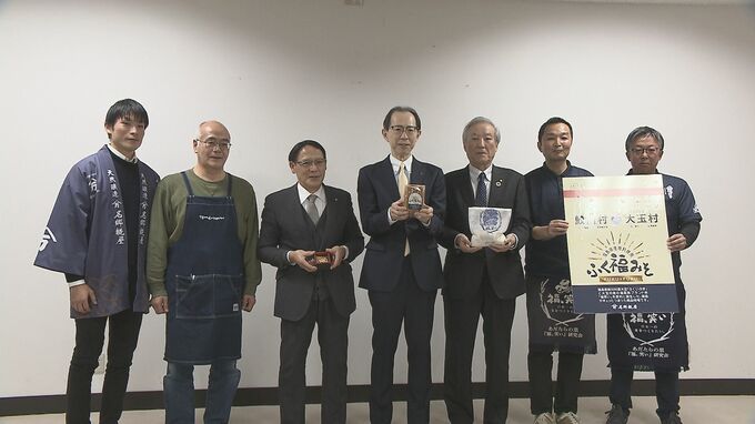 「ふく福みそ」は、鮫川村特産の大豆「ふくいぶき」と、大玉村産の県のブランド米「福、笑い」を使って作った新商品です。本宮市で300年以上続く「名郷糀(こうじ)屋」が、保存料や添加物を使わない天然醸造で手がけ、木の樽で1年間熟成させて完成させました。