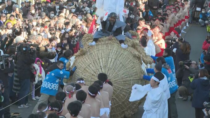 会津坂下町の大俵引きは、来年で400回目を迎える新春の伝統行事です。紅白に分かれて綱を引き合い、赤が勝てばその年はコメの値段が上がり、白が勝てば豊作になると言われています。