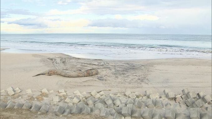 海岸に体長8メートルのクジラの死がい打ち上げられる 福島・新地町 2024年12月26日(木) 18:06 国内 福島県新地町の海岸に26日、体長約8メートルのクジラが打ち上げられ死んでいるのが確認されました。【平岡沙理アナレポ】「新地町の釣師浜海水浴場に来ていますあちらには砂にまみれたクジラが打ちあがっています…