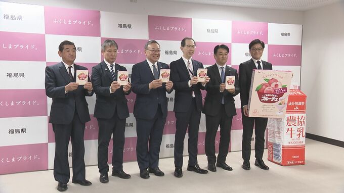 来週から全国で販売されるのは、県産モモの主力品種「あかつき」のピューレを使ったフルーチェで、8日、ハウス食品やJAの関係者が、福島県の内堀知事に報告しました。