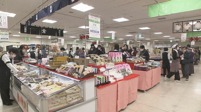郡山市のうすい百貨店で、9日から始まった「大京都展」。八ッ橋など、定番の和菓子や宇治抹茶を使ったスイーツのほか、京都料理25種類を詰めたお弁当など、名産品が並びます。今年は59店が出店していて、そのうち7つが初出店です。