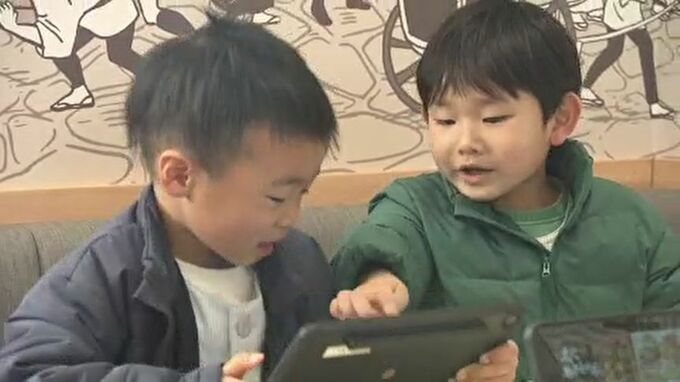 タブレットで注文する子どもたち「すごーい」