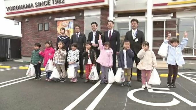 浪江町の国道6号沿いにできた「すき家6号浪江店」。震災後、町では初めてとなる24時間営業の店舗で、21日は、町の子どもたちが招待されました。