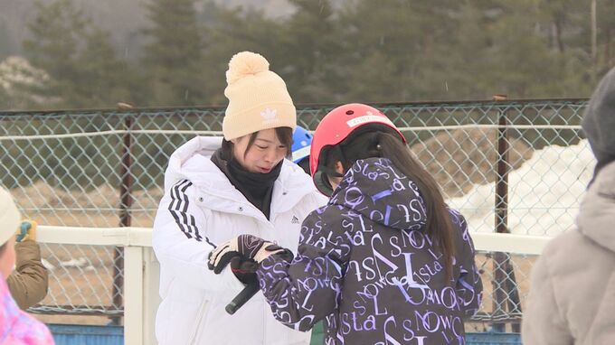 2日、福島県石川町でスケート教室が開かれ、たくさんの子どもたちが青空リンクを楽しみました。講師を務めたのは、金メダリストの高木菜那さん。スケートの魅力を伝えました。