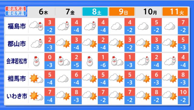 その後も雪は強まり、6日(木)午前6時までの24時間に予想される降雪量は、会津山沿いで100センチ、会津平地で50センチ、中通り山沿いで40センチ、中通り平地で20センチとなっています。
