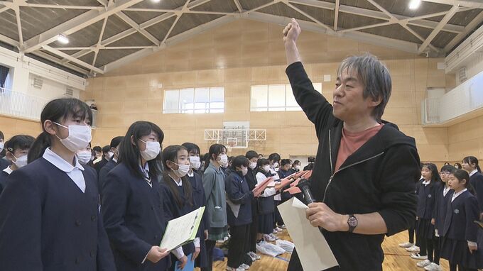 今年4月、福島市の松川地区の小・中学校を統合させて、新たに開校する松陵義務教育学校。開校を前に学校の校歌がお披露目され、作曲した大友良英さんが、子どもたちを直接指導しました。