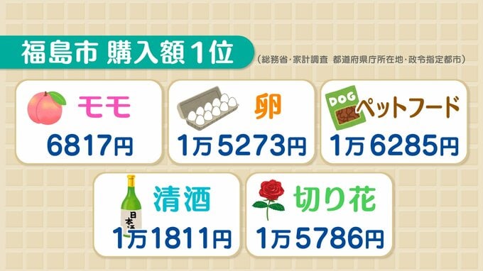 さらに、こちらも酒どころの福島ならでは。清酒も1万1811円と、日本一です。そして、卵、切り花、ペットフードも、日本一という結果になりました。