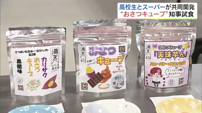 スーパーと高校生などが、福島県楢葉町で採れたサツマイモを使った菓子を共同開発しました。