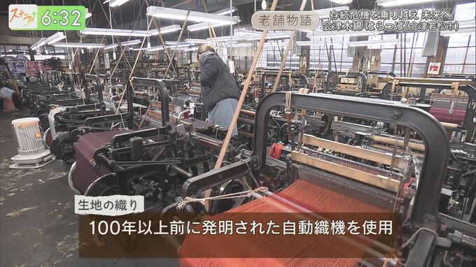 織りには、100年以上前に発明された自動織機がいまも使われていて、これにより会津木綿独特の風合いが生まれるといいます。
