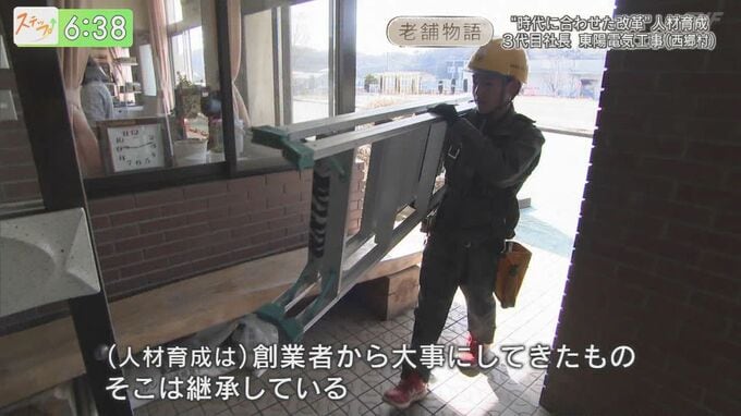 福島県内で長く愛されている老舗の今を伝える『老舗物語』。今回は、西郷村で90年以上続く電気工事を生業とする企業です。事業を継承し続けるため、時代に合わせた社内改革にチャレンジする3代目に注目しました。