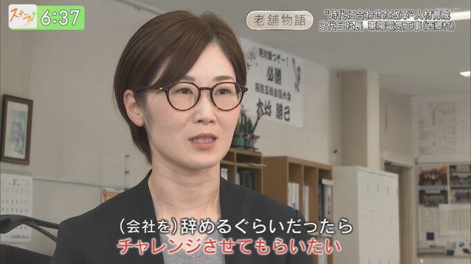 周囲に受け入れてもらうためにはと入社後、猛勉強で電気工事士の資格を取得。話を聞いてもらえる体制ができたところで、まず取り組んだのが就業規則などを見直す“社内改革”です。創業当初から変わっていなかった内容を、今の時代に合わせた新しいものに一新しました。